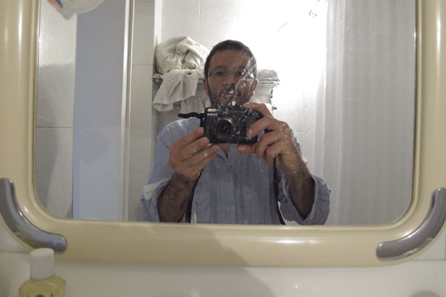 selfie dans les toilettes de notre chambre du Hafez Hôtel à Shiraz en Iran.