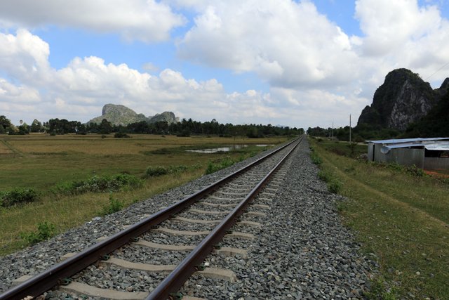 le chemin de fer sur la route des grottes près de la ville de Kampong Trach (à 13km à l'est de Kep)